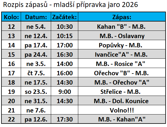 Rozpis zápasů JARO 2026: